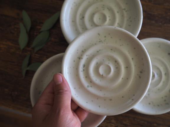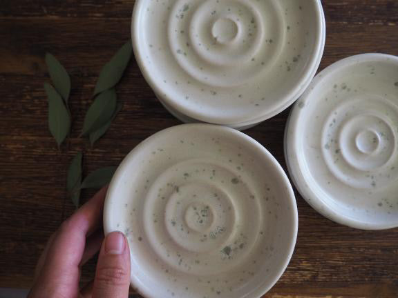 We are pleased to offer these beautiful and minimalist ceramic soap or trinket dishes from artist, Akela Hudson. Each has been hand-sculpted, allowing for a unique finish with every dish.